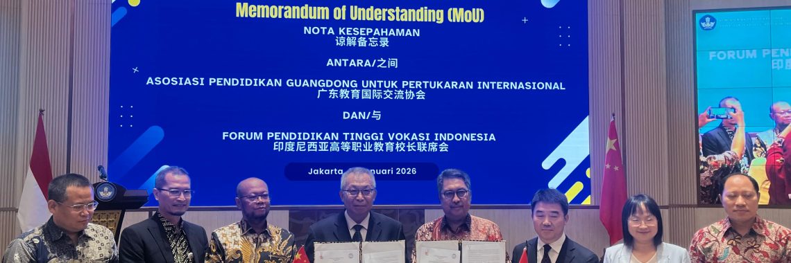 Perguruan Tinggi Vokasi Indonesia menjalin kerja sama dengan Perguruan Tinggi China, melalui penandatanganan MOU antara Forum Pendidikan Tinggi Vokasi Indonesia (FPTVI) dengan Asosiasi Pendidikan Guangdong untuk Kerjasama Internasional (GAEIE). Pendidikan tinggi Vokasi Indonesia diwakili oleh Dekan Fakultas Vokasi Universitas Hasanuddin Prof. Muh Restu, selaku Ketua FPTVI dan Mr Zhao Peng Fei selaku Presiden GAEIE. Kerja…